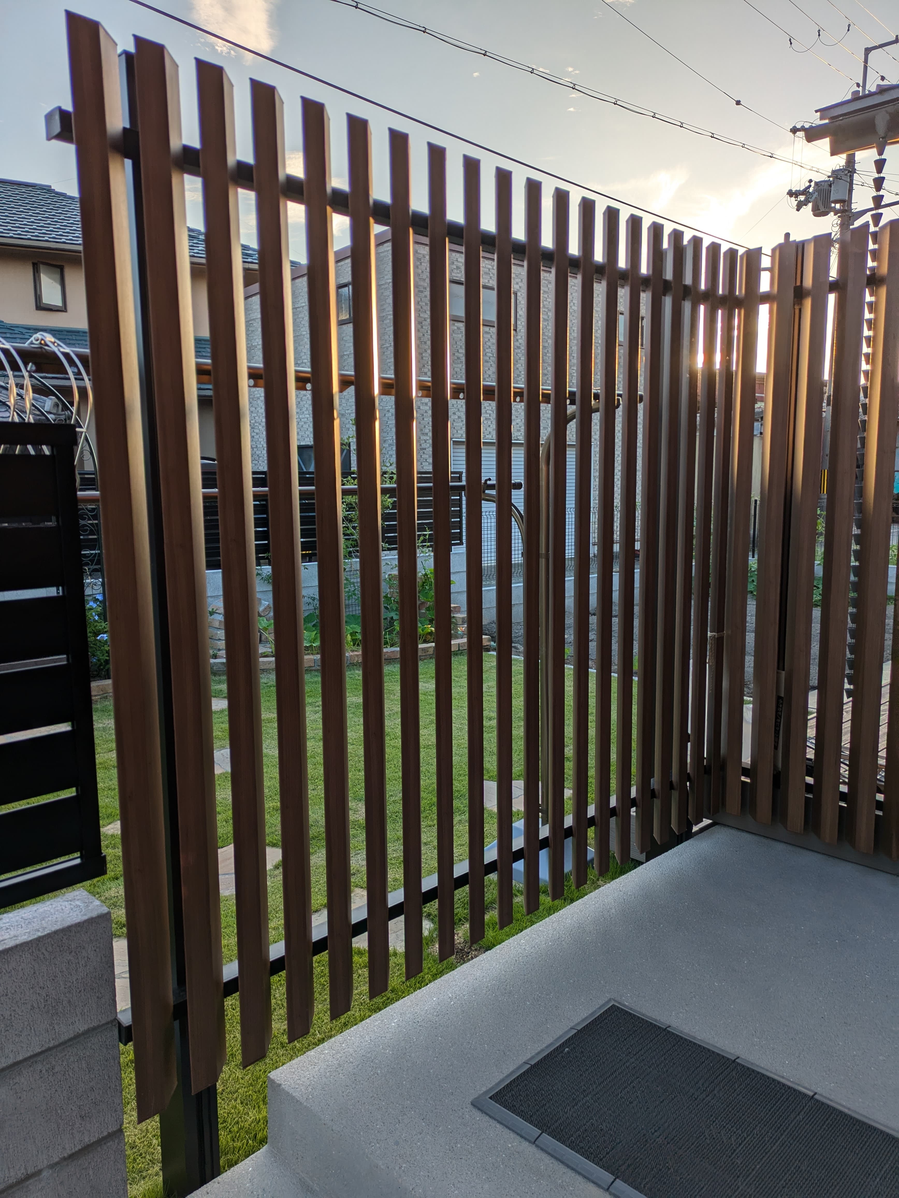 小さなお子様がのびのびと遊べるように、思いきって敷地全体をフェンスで囲いました。これにより、車の通行を気にせず、安心してお庭で遊んでいただける空間に仕上がっています。