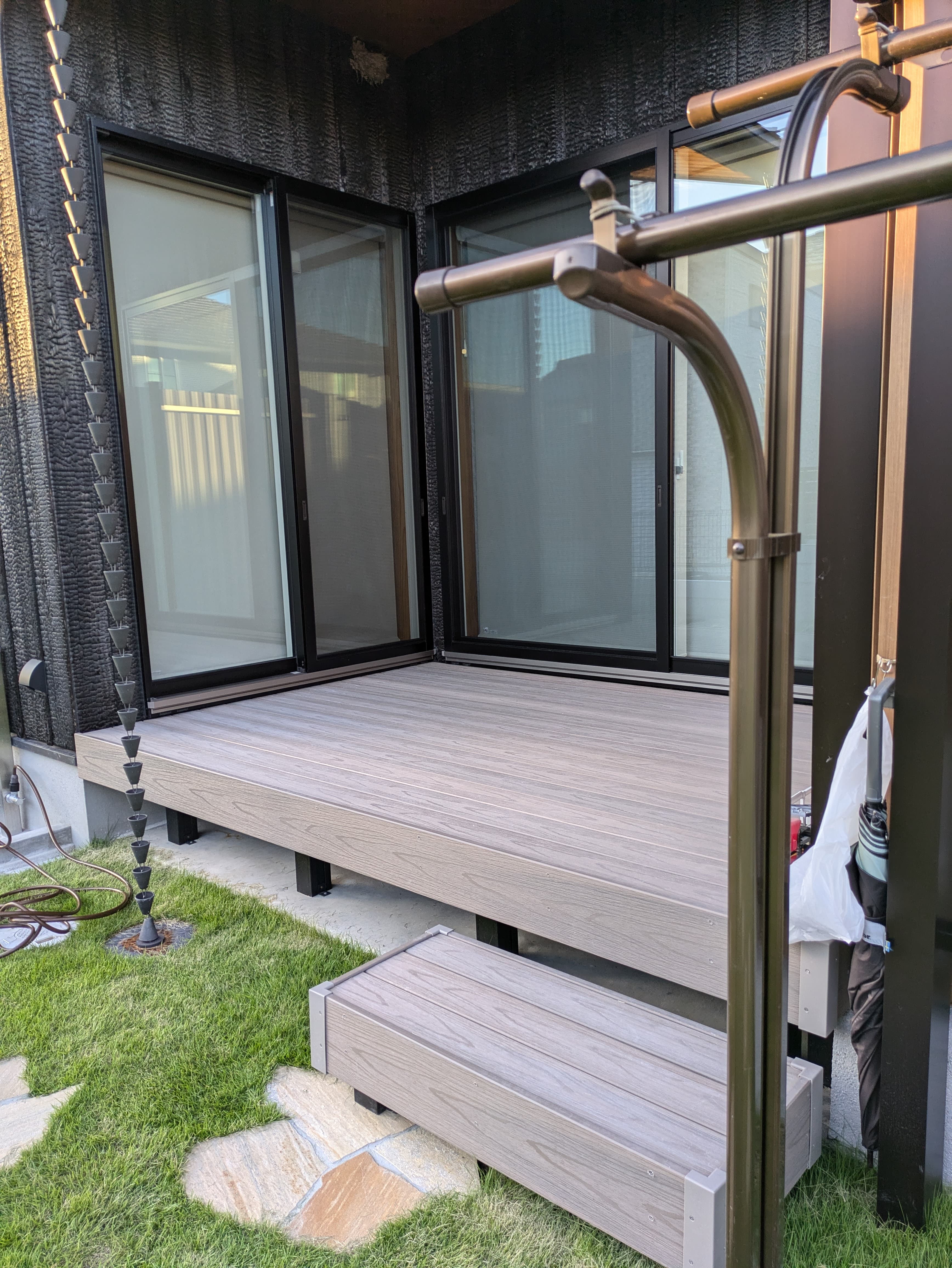お庭には、あたたかみのあるアイアンウッドでベンチを設置。遊びの合間のちょっとした休憩にもぴったりです。 足元には天然芝を敷き、素足で駆け回れる気持ちよさも魅力のひとつ。 やわらかい芝生の感触が、外遊びの楽しさをさらに広げてくれます。